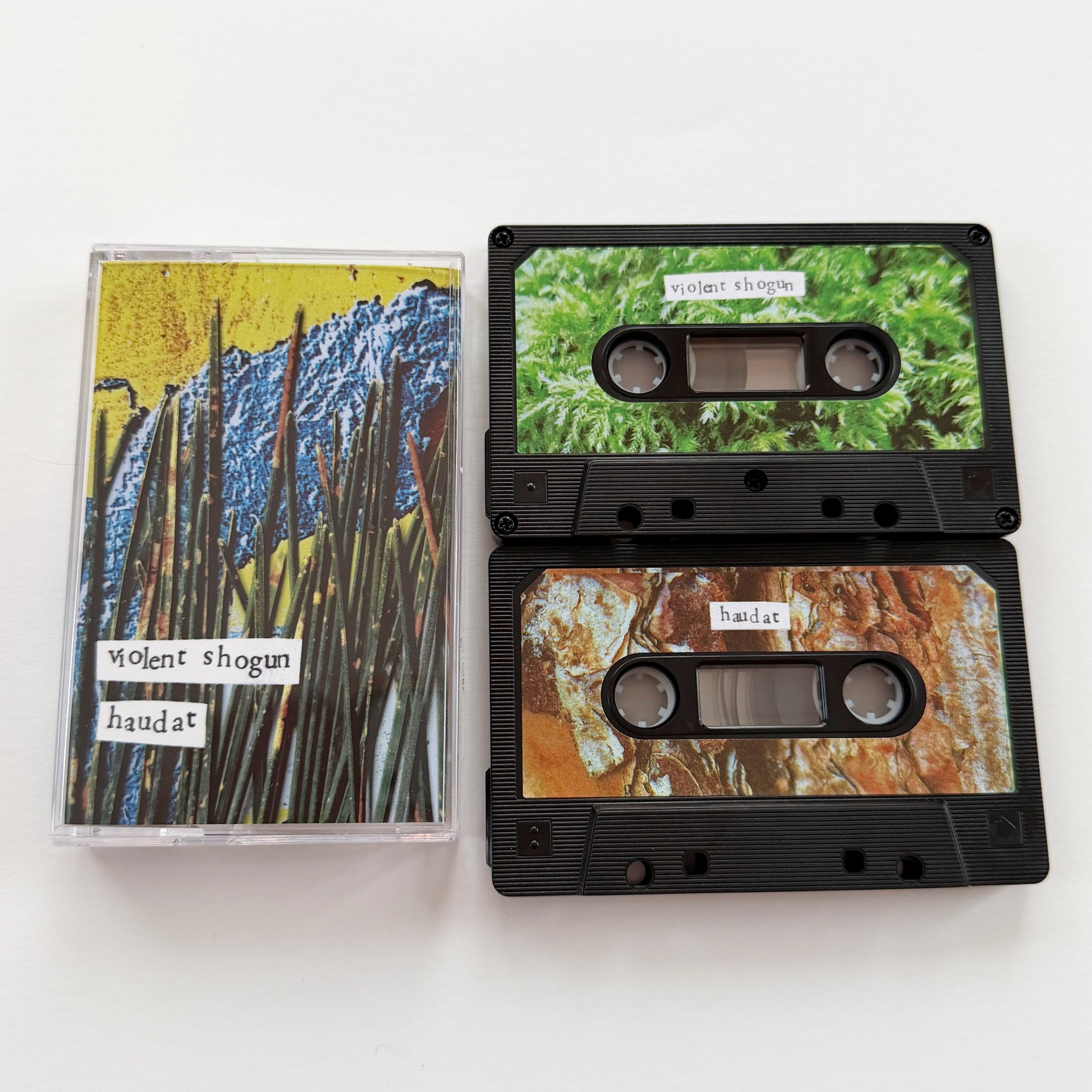 Violent Shogun and Haudat team up for a split release. It presents their texturally rich signature sounds, driven by a shared vision of noise focused on analog tape and broken, distressed sounds, holding everything together as a cohesive whole.
